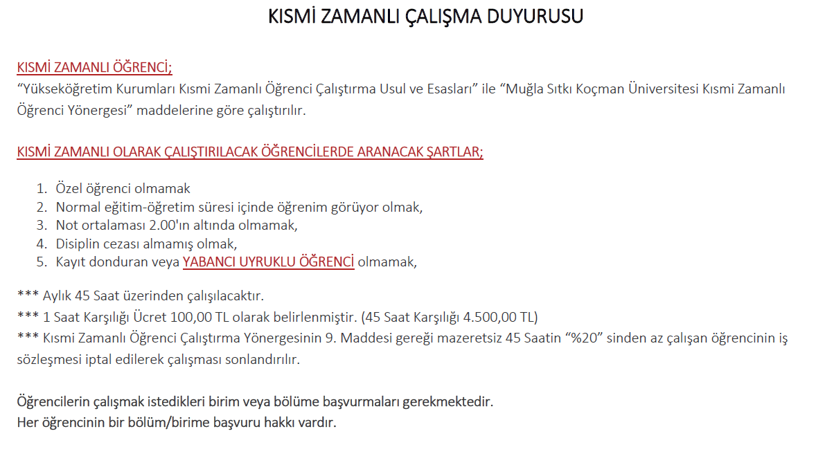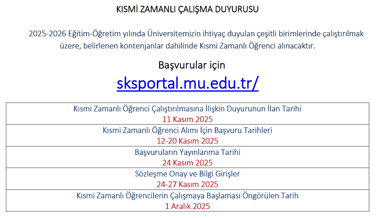 2025-2026 Kısmi Zamanlı Çalışma Duyurusu